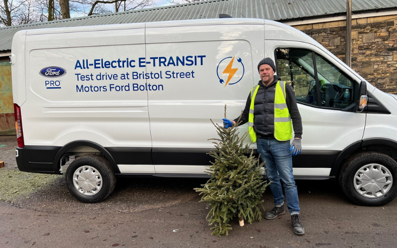 Utilising an eco-friendly Ford E-Transit, two colleagues from the dealership, Andrew Waring and Alex Weston played a pivotal role in the collection of real Christmas trees from residents across Bolton.
