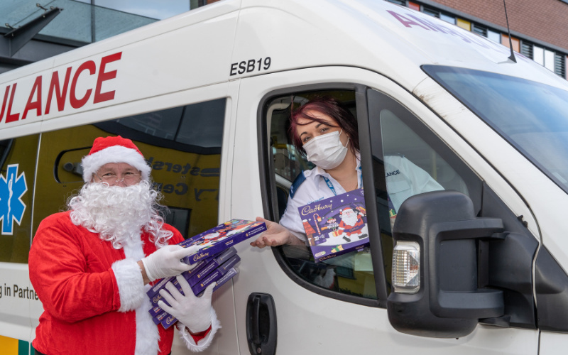 As part of their ongoing support for the charity, 100 selection boxes were handed over by Father Christmas, aka Sales Executive Andrew Howl.