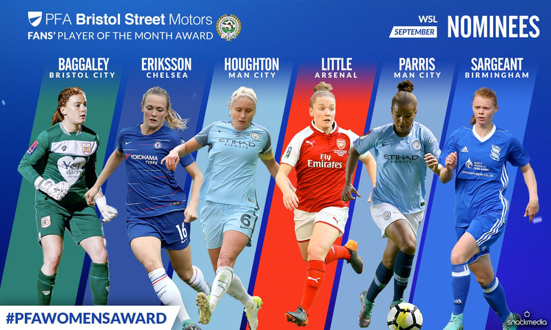 The monthly award will run alongside the PFA Bristol Street Motors Fans' Player of the Month Award, which recognises male players in the english football leagues, and the shortlist will be curated by panelists from the PFA and Snack Media, as well as guests panelists!