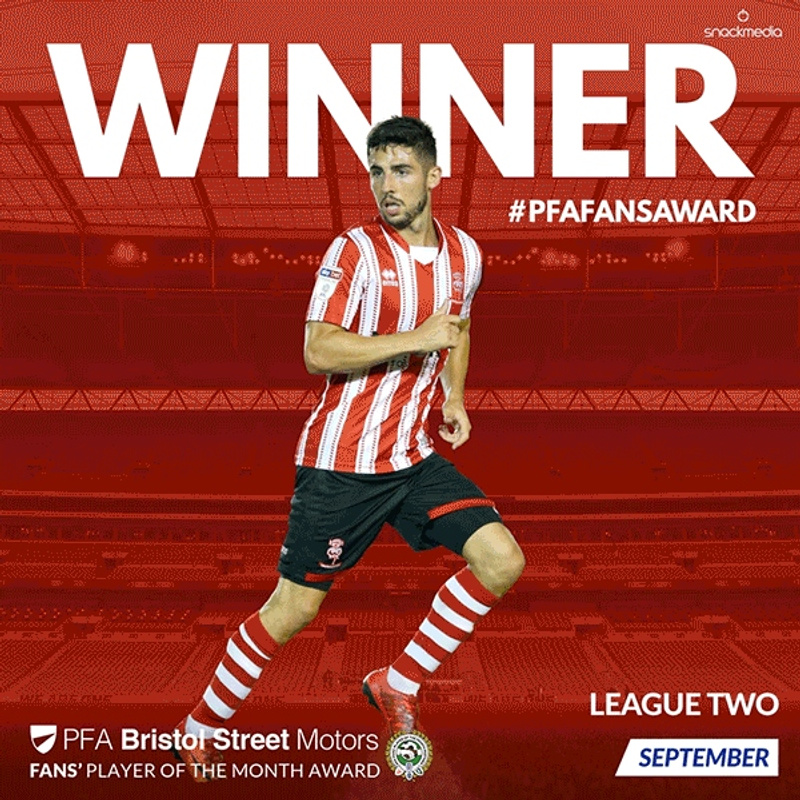 In a vote run by fan engagement experts, Snack Media, the midfielder won a tight contest - he received 28% of the vote for September with teammate, Jason Shackell, taking second place.