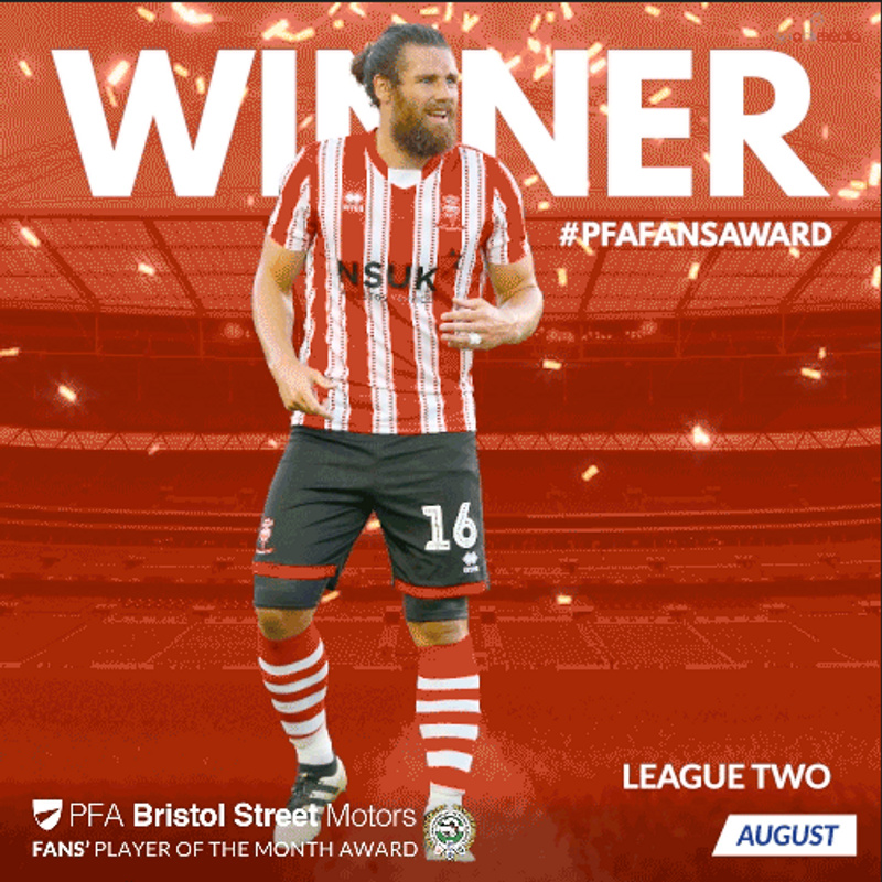 In a vote run by fan engagement experts, Snack Media, the versatile defender/midfielder won convincingly - he received 34% of the vote for September - beating Crawley Town forward Ollie Palmer, who