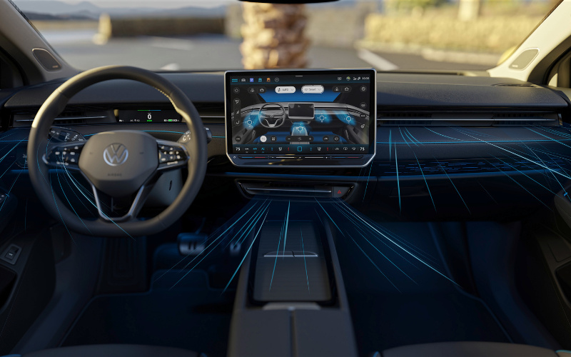 Monitoring the position of the sun, the ID.7 detects the angle of sunlight and match it with high outside temperature, adapting the air conditioning to address the warmest zones of the vehicle and where passengers are seated.